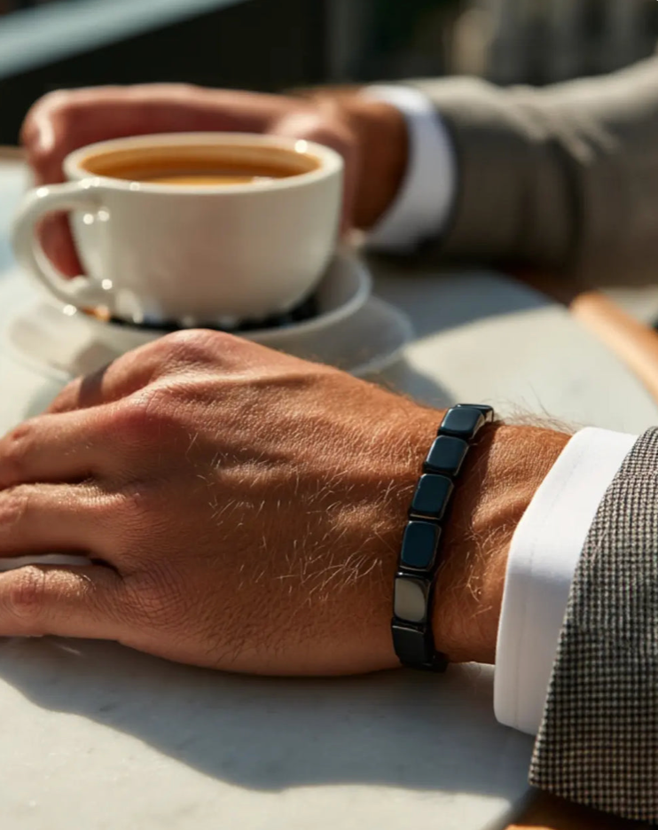 Forged from natural hematite, each HEMORA bracelet withstands time and use. No fading, no loosening — a robust design made to accompany every moment of your life.