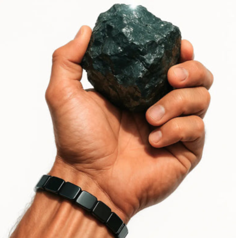 Le bracelet HEMORA exploite le champ magnétique naturel de la pierre d’hématite — un minéral reconnu depuis des siècles pour ses vertus d’ancrage et d’harmonie.