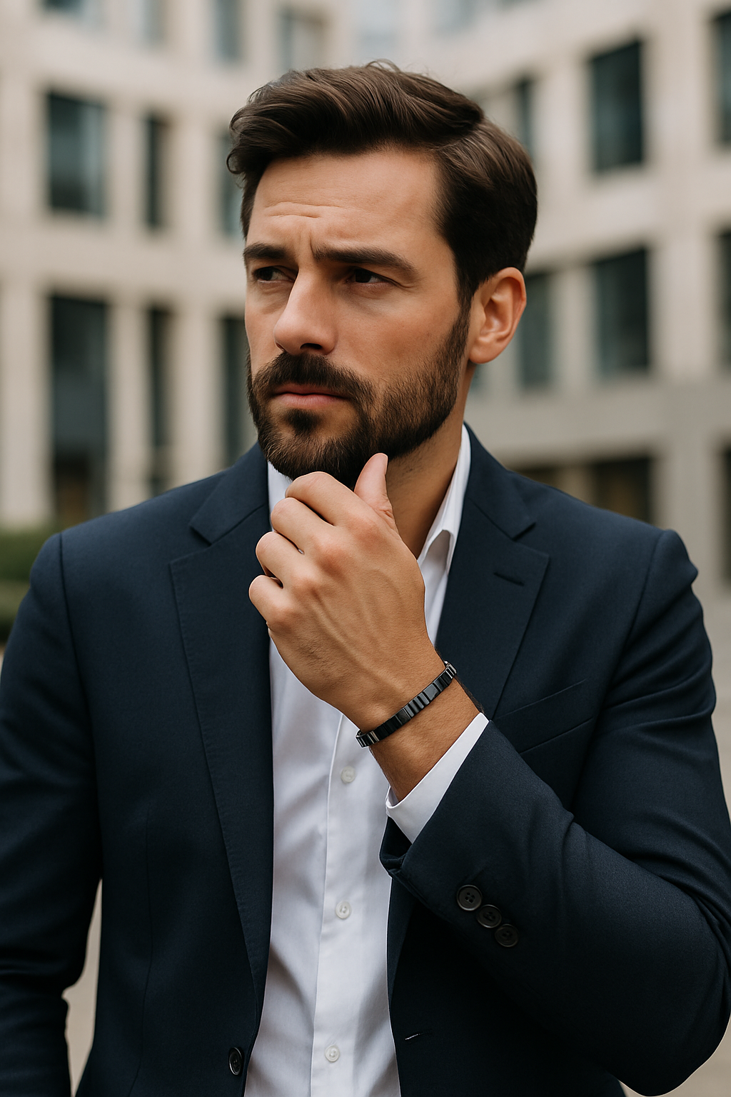 Celui de l’homme ancré, calme et fort — celui qui avance avec maîtrise.